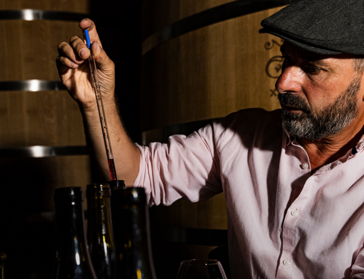 Pierre angulaire de l’élaboration d’un vin, l’assemblage est l’étape qui détermine sa construction. Assemblage d’origines, de parcelles, de sols, de cépages, de millésimes… c’est pourquoi on le compare à un alchimiste. “On construit tout à ce moment-là et on façonne une oeuvre d’art, en cohérence avec tous les éléments que l’on a pu déterminer en amont”.